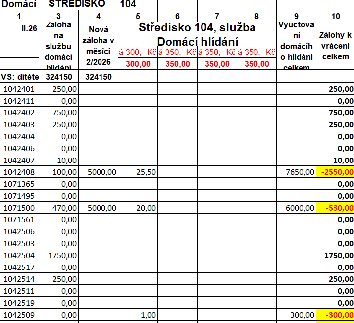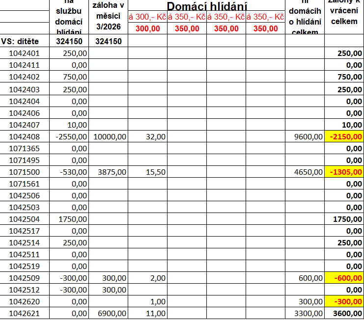 Pokud rodiče potřebují podrobnější/aktuálnější informace o výši kreditu, než je uvedeno v tabulce viz výše, na vyžádání jim je sdělí koordinátorka služby Domácí hlídání.